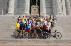 Supporters of bicycling, walking, and trails in Missouri visited Missouri's Capitol Monday for the 14th annual Bicycle & Pedestrian Day at the Capitol. We held our annual legislators ride and rally and visited the office of every Missouri state elected official with an information packet about our legislative priorities for 2017. News media from around the state covered Monday's event.